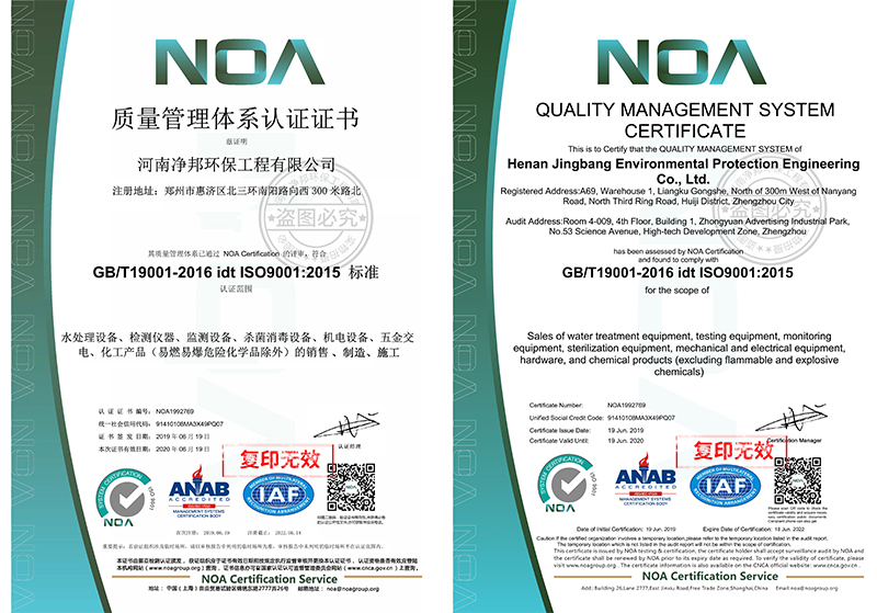 質量管理體系認證證書